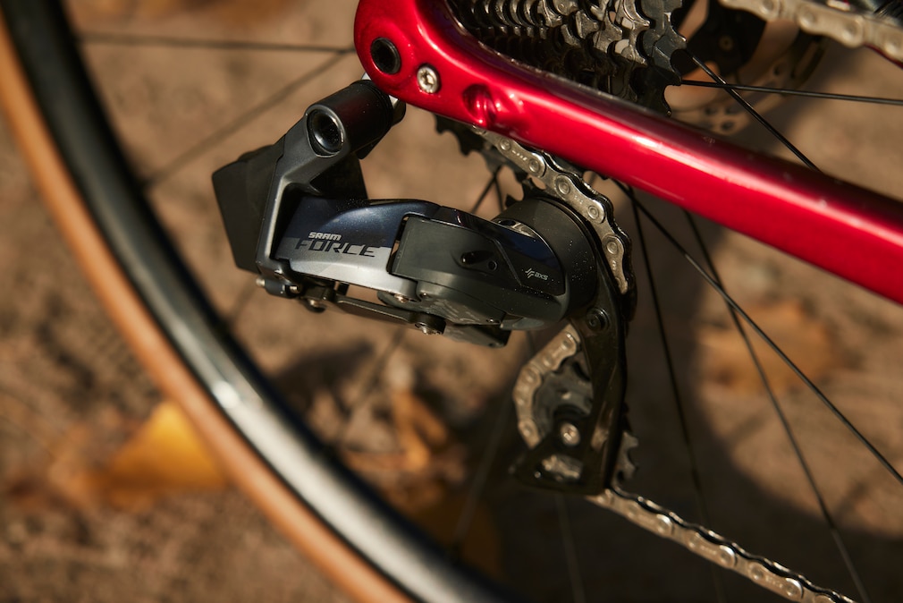 Die Zwölffach-Schaltgruppe, Sram Force AXS, ist auch für steile Passagen ausgelegt.