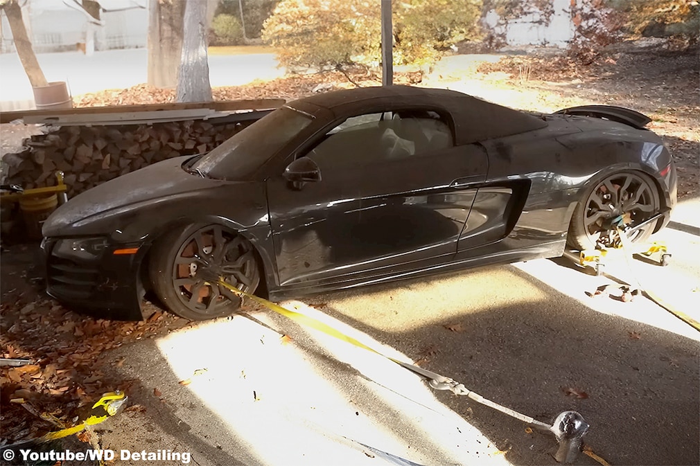 In dem neuesten Youtube-Video von "WD Detailing", einem amerikanischen Autopflegeunternehmen, widmet sich das Team einem besonders heftigen Fall. Konkret geht es um einen Audi R8 V10 Spyder der ersten Generation, der mit offenen Seitenscheiben unter einem Carport stand. Doch wie konnte es überhaupt so weit kommen?
