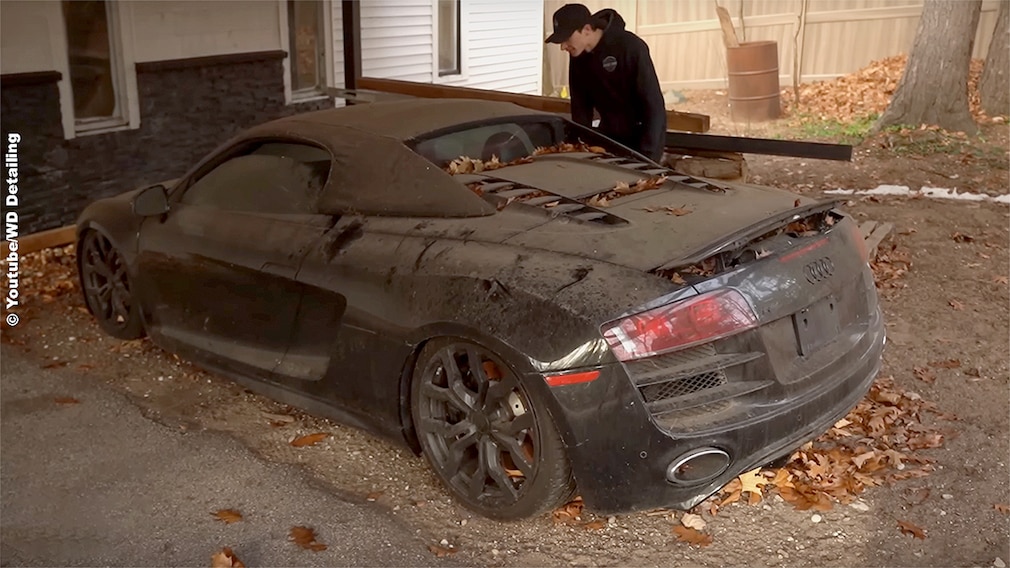 Was passiert, wenn man einfach zu viele Autos besitzt? Man "vergisst" kurzerhand seinen Audi R8 Spyder und lässt den Sportwagen jahrelang unter einem Carport verrotten!