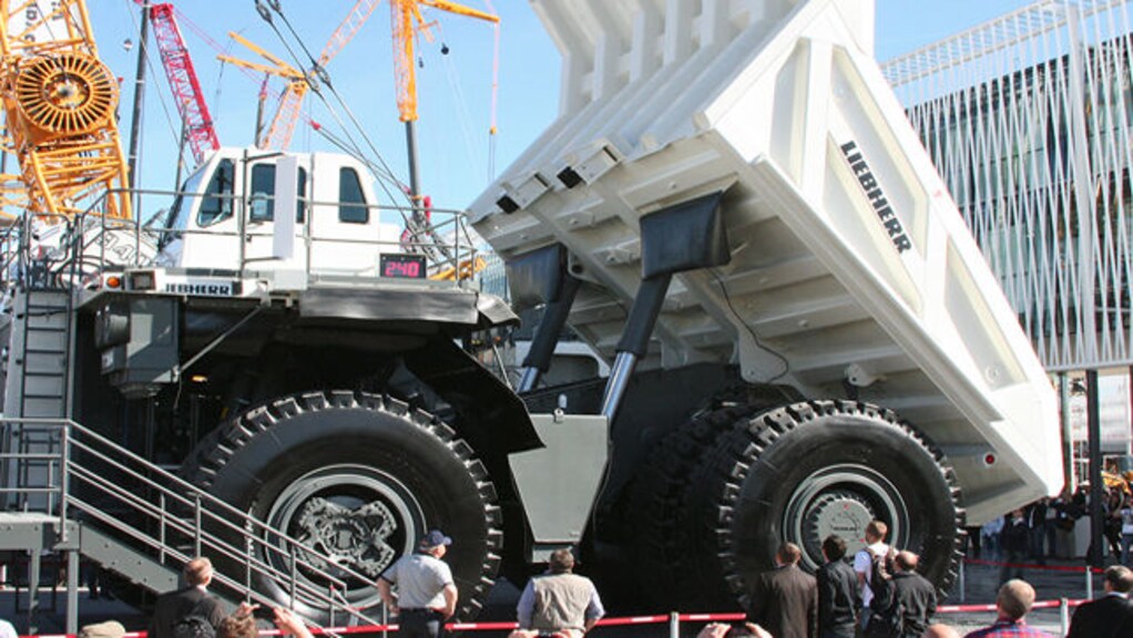 Die Bauma steht für Superlative. Sie ist die größte Baumaschinen-Messe der Welt. Auf 570.000 Quadratmetern präsentieren viele der 3400 Hersteller aus 57 Ländern XXL-Kräne, -Muldenkipper, -Bagger und -Bohrer. Stahlkolosse, die auf gewöhnlichen Baustellen nie zu sehen sind. So verrichtet der imposante T 264 von Liebherr seinen Muldenkipper-Dienst auf einem Minen-Gelände in Arizona, USA. Ein 2700-PS-Diesel beschleunigt ihn auf 64 km/h – sogar voll beladen mit einem Gesamtgewicht von 385 Tonnen. Beachtlich auch die Aufbauzeit für die Bauma: Im Januar begannen bereits über 20 Lkw damit, den Muldenkipper Stück für Stück nach München zu schaffen.