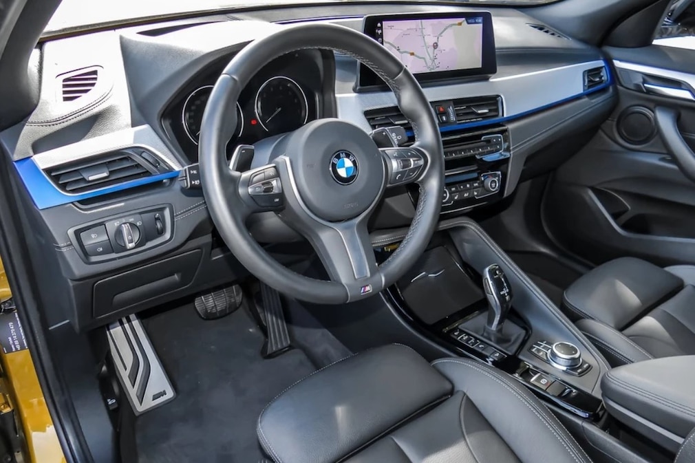 Der M35i ist nicht nur in puncto Leistung das absolute Topmodell der X2-Baureihe. Auch in Sachen Ausstattung muss hier niemand Abstriche machen, der gerne sportliche Details in seinem Fahrzeug hat. Der X2 ist beispielsweise mit einem Sportfahrwerk, dem M Lederlenkrad, schicken Leichtmetallfelgen und Sportsitzen ausgerüstet. Das Panorama-Glasdach sorgt beim hier angebotenen Modell dafür, dass der Innenraum eine Extraportion Tageslicht abbekommt.