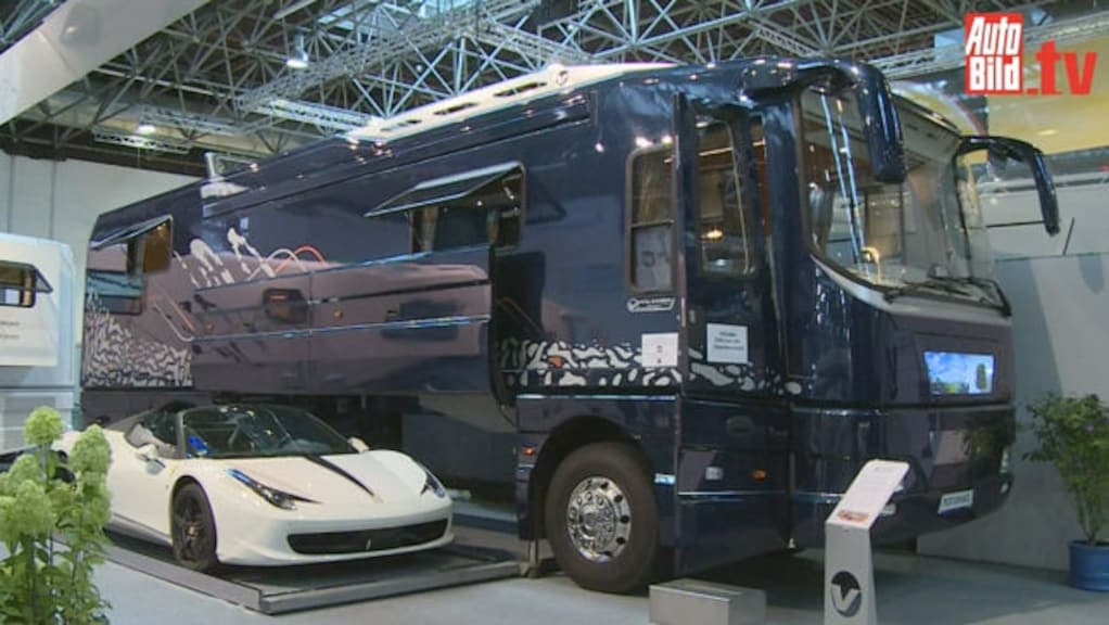 Schlafprobe im Mercedes Marco Polo auf dem Caravan Salon in Düsseldorf umgesehen. Hier stellen sie ihre ganz persönlichen Highlights der Camper-Messe vor. Im High-End-Segment der Luxuswohnmobile präsentiert Volkner Mobil das Modell Performance II. Der zwölf Meter Lange Luxusliner auf einem Reisebusfahrgestell ist quasi der