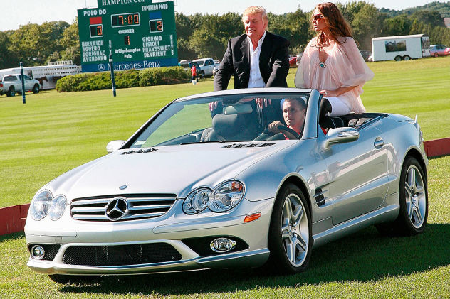 Zudem stand schon mal ein weinroter Mercedes 560 SL (Baujahr 1987) von Donald Trump zum Verkauf – und zwar bei einem Oldtimerhändler in der badischen Provinz. Der Wagen der Baureihe R 107 gehörte ausweislich der dazugehörigen Originalpapiere von 1987 bis 1992 dem kommenden US-Präsidenten Trump.