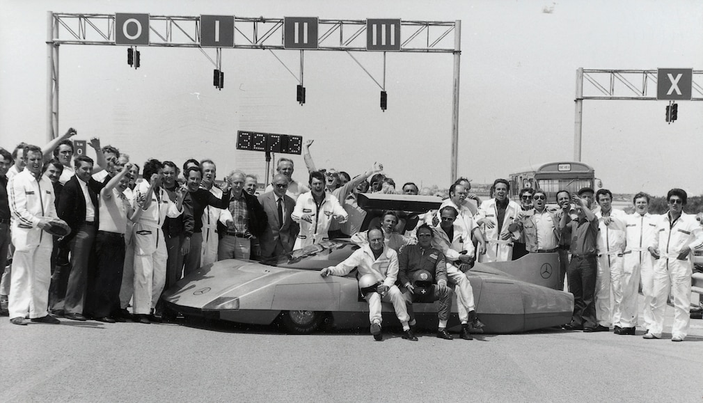 Dank der extrem windschnittigen Karosserie des C111-3 erreichte der Versuchsträger mit einem 230 PS starken OM-617-Triebwerk 1978 eine Höchstgeschwindigkeit von 327 km/h – Rekord für Dieselfahrzeuge.