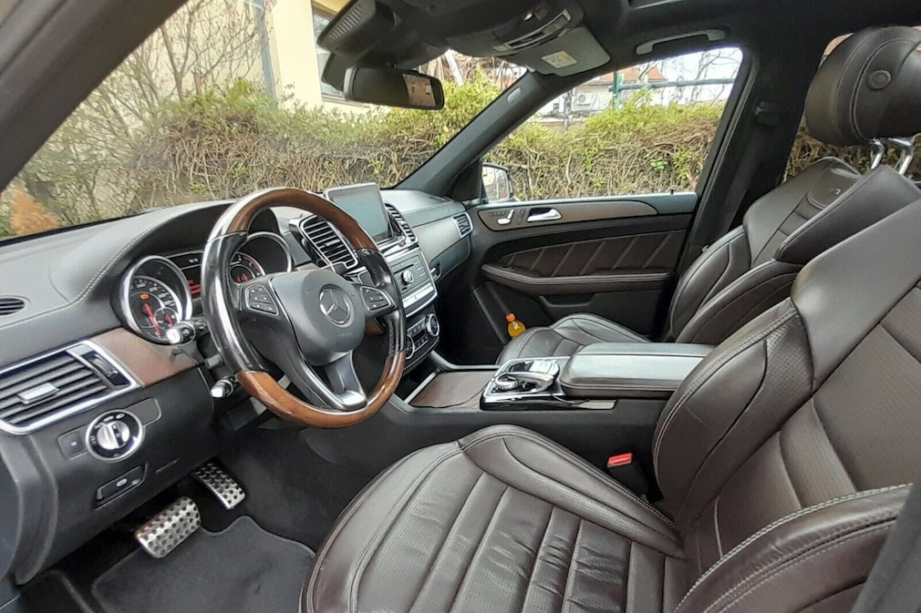 Viel Leder und Holz im Interieur des bei eBay zum Kauf angebotenen gebrauchten Mercedes-AMG GLE 63 S.