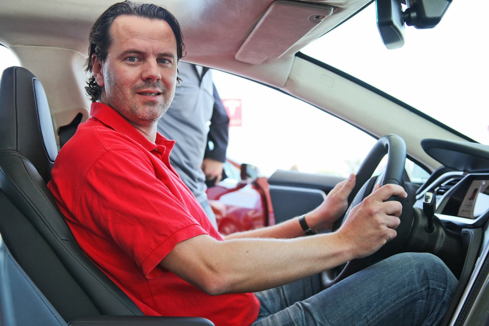 AUTO BILD-Autor Hauke Schrieber – hier am Steuer des Tesla Model S – setzt auf Barack Obama.