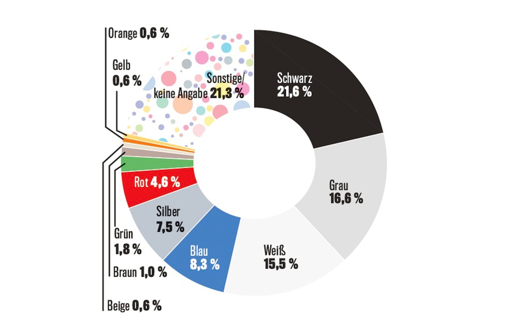 Der Trend zur Tristesse hat mit gesellschaftlichen Entwicklungen und modischen Strömungen zu tun, aber auch mit schrumpfenden Privatkäufen. So wurden 2024 mehr als zwei Drittel aller neuen Pkw gewerblich zugelassen. Leasingfirmen und Flottenbetreiber nehmen Einfluss auf die Farbwahl. Ein orangefarbenes Massenmodell hat einen niedrigeren Wiederverkaufswert als ein unbuntes. Grau oder Schwarz bergen wenig Risiko, Weiß wird im Export nach Südeuropa und Afrika besonders bei kleinen Autos nachgefragt.