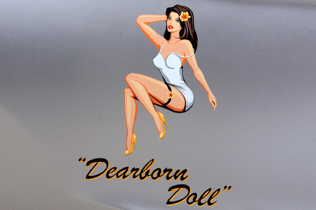 Kohle einbringen für den fliegenden Nachwuchs: Das ist die Aufgabe des Ford Mustang AV-X10 Dearborn Doll. Das Einzelstück ist an ein Kampfflugzeug aus dem Zweiten Weltkrieg angelehnt und kommt mit Pin-up-Girl.