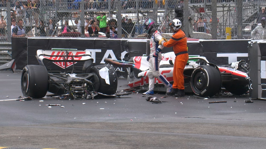 Bitterer Sonntag für Mick Schumacher: Der Deutsche fliegt in Runde 27 des Monaco GP in der Schwimmbadschikane spektakulär ab und sorgt für einen heftigen Unfall: Sein Haas bricht beim Einschlag in die Barrieren sogar auseinander, die Hinterachse wird abgetrennt. "Ich bin okay, aber ich weiß nicht, was passiert ist", gibt Mick am Funk nach dem Crash erste Entwarnung. Das Rennen wird zwischenzeitlich mit der roten Flagge gestoppt.