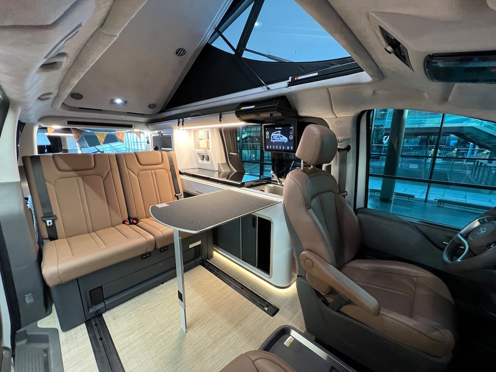 Herzstück des Konzepts ist ein voll integriertes, elektrisch betriebenes Aufstelldach. Per Knopfdruck öffnet es den Innenraum, sorgt für mehr Licht und erleichtert den Zugang zum Küchenbereich. Wichtig für Camper: Trotz der Dachkonstruktion bleibt die Aerodynamik erhalten, Windgeräusche sollen auf ein Minimum reduziert werden.