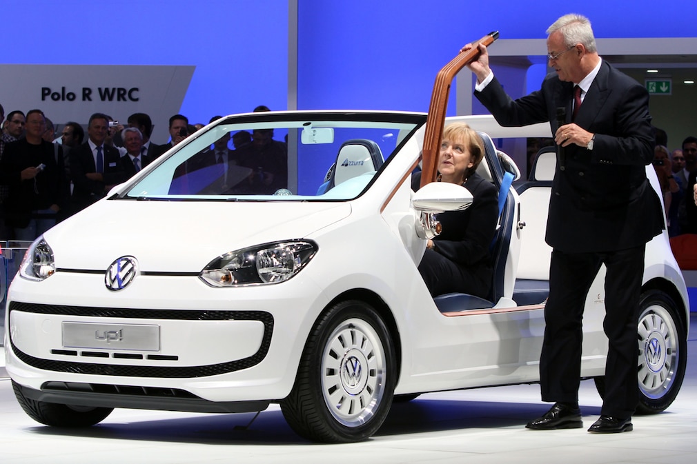 Auf Tuchfühlung: Bundeskanzlerin Angela Merkel im VW Up-Entwurf Azzurra.