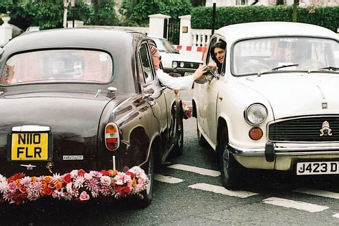 Nett hat er es hier: rechts ein Blumenladen, links Antiquitätenhändler. Nur die Lieferwagen, die regelmäßig über den Flur donnern, stören ein wenig. Aber nun, die eigentliche Behandlung findet ja woanders statt. Im Ambassador. Drei dieser indischen Morris-Oxford-Nachbauten hat der schräge Vogel zu höheren Weihen verholfen: Er überführte die darbenden Drittwagen aus den Garagen kolonial denkender Briten ins Nirwana des Londoner Stadtverkehrs. Nun sind sie "Karma Kabs". Fahrende Schreine von Heathers Gnaden. Oder, banal betrachtet, quietschbunte, rappelnde Taxis.