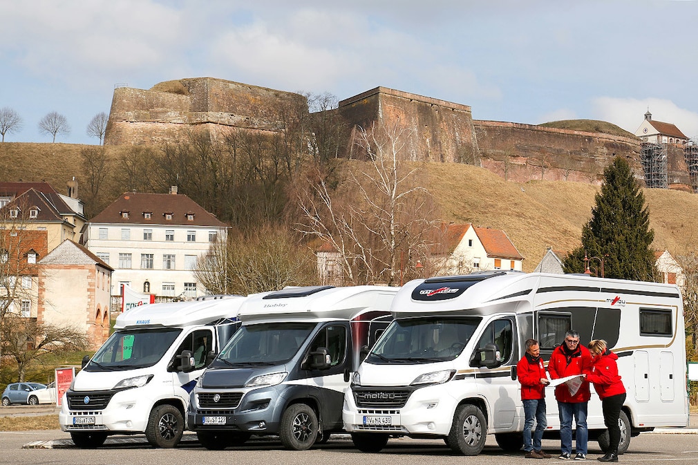 Wenn Deutschland um einen Kompromiss ringt, kommt oft wenig Visionäres raus. Doch wir sind nicht in Berlin, sondern testen Wohnmobile, diesmal im Pfälzer Wald und in den Vogesen: Und hier beweist sich, dass in der Mitte eben längst nicht alles gleich ist. So ähneln sich zwar Knaus und Malibu beim Grundriss, doch der Testwagen von Hobby geht das Thema völlig anders an. Für die Käufer ist das ein Glück: Sie können wählen. Denn so populär die Klasse der Teilintegrierten ist, so unterschiedlich wirken die Konzepte im Reise-Alltag. Da herrscht nicht das Diktat der Gleichmacherei, auch wenn unser Test-Trio auf den Fotos zunächst nur Unterschiede im Detail zeigt.