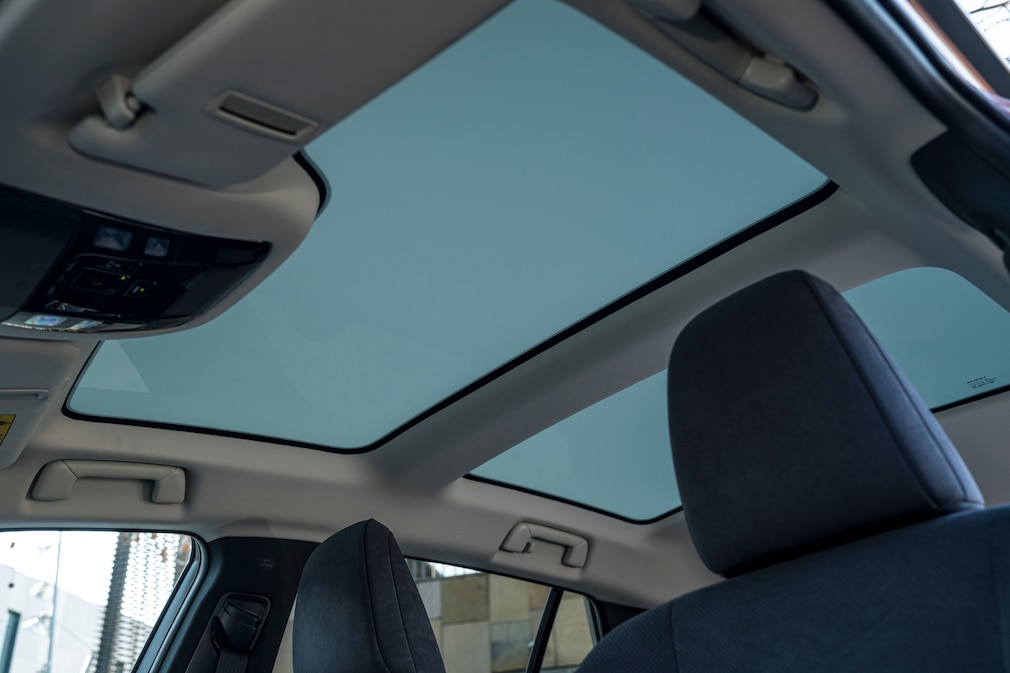 Das Panorama-Glasdach im RZ lässt sich abdunkeln. Einfach auf den Knopf in der Dachkonsole drücken, schon verwandelt sich das Klargas in Milchglas – durch das höchstens noch Umrisse der Umgebung zu erkennen sind.
