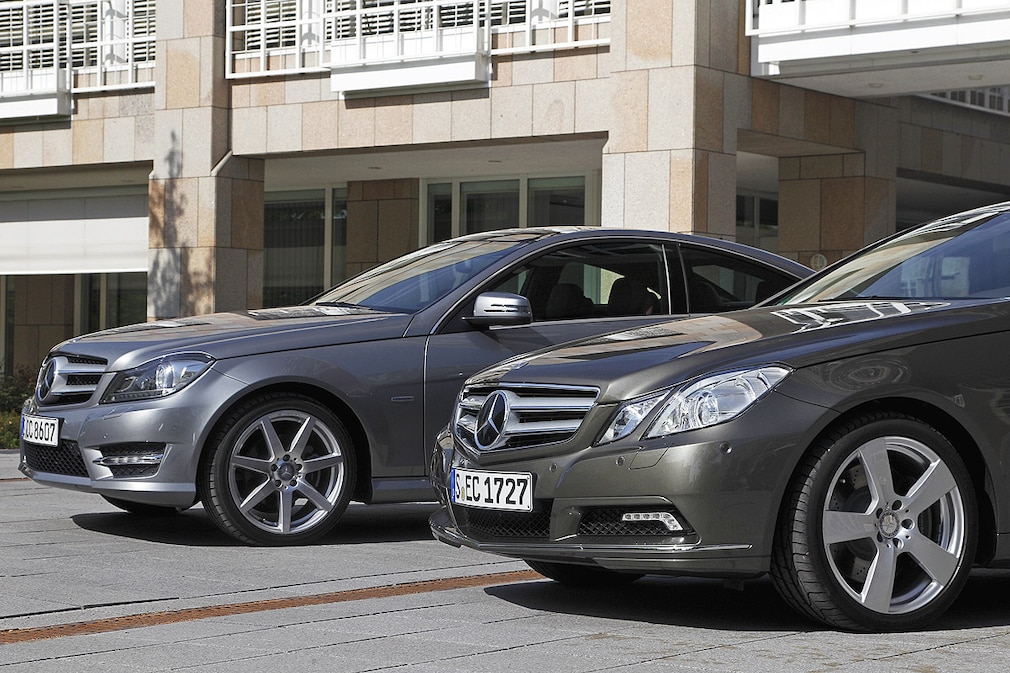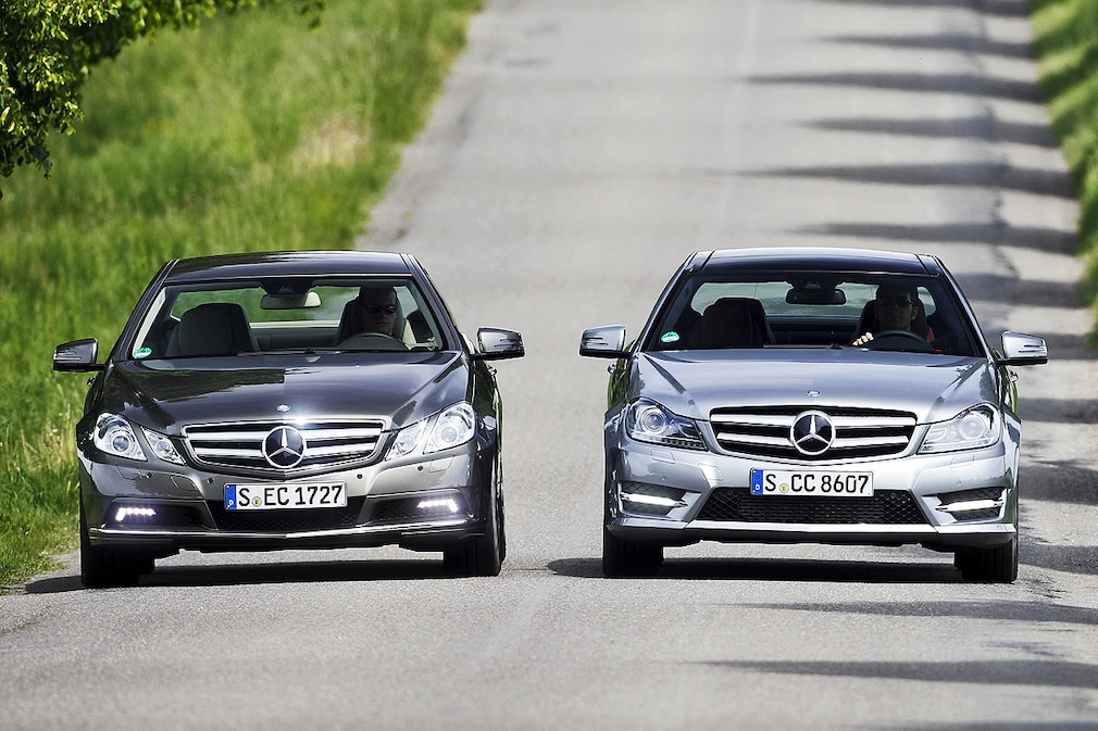Verwechslungsgefahr: E-Klasse und C-Klasse Coupé sind sich optisch sehr ähnlich.