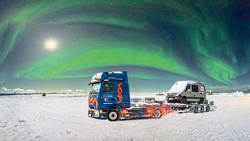 Bei minus 41 Grad und über 8000 Kilometer: Der Elektro-Lkw eActros 600 von Mercedes meistert den Extremtest im arktischen Winter.