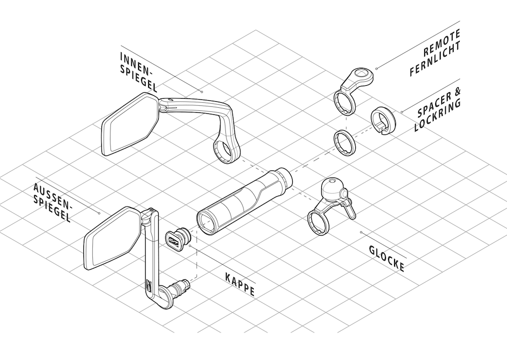 Anbauteile wie dieser Fahrrad-Spiegel lassen sich formschön am Lenker montieren.