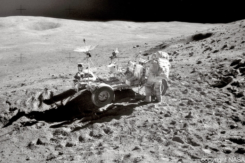 Das erste LRV ("Lunar Roving Vehicle") der NASA kommt 1971 mit Apollo 15 auf den Mond.