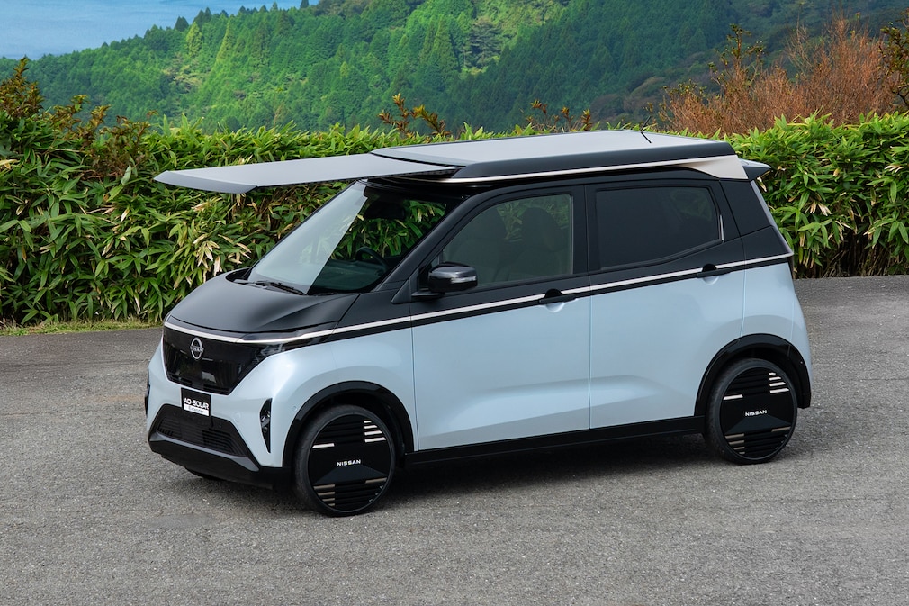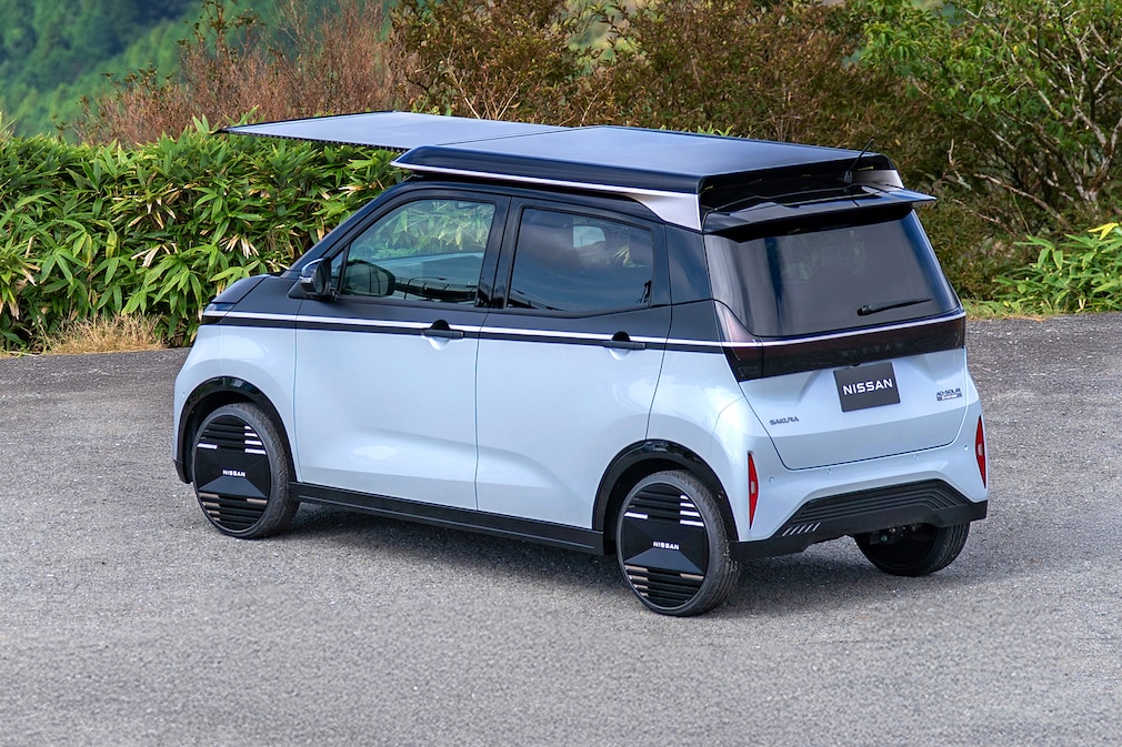 Die Idee klingt simpel, ist aber clever: Das kompakte Kei-Car, Japans meistverkauftes Elektroauto der vergangenen drei Jahre, bekommt ein aufklappbares Solarpanel-System auf dem Dach. Während der Fahrt lädt das feste Dachmodul, im Stand lässt sich eine zweite Platte nach vorne ausfahren – Gesamtleistung: rund 500 Watt. Laut Nissan reicht das, um im Jahr Energie für etwa 3000 Kilometer zu gewinnen.