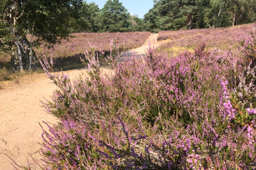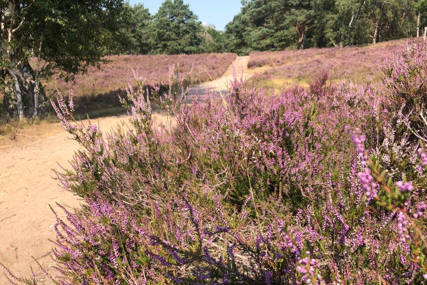 Dem Duft der Fischbeker Heide nach führt der Track durch tiefen Sand.