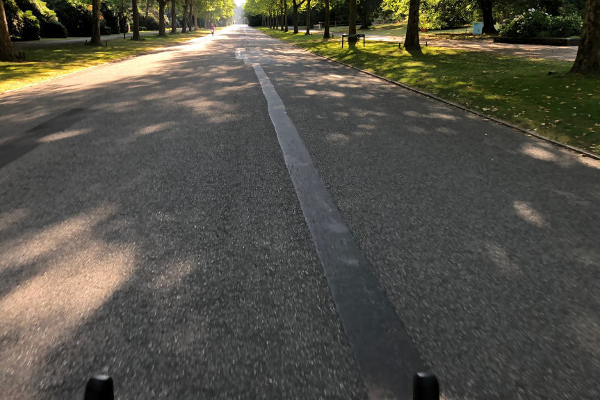 Den Orbit Hamburg muss ich in zwei Tagen fahren statt wie geplant an einem. Das war eigentlich ganz anders gedacht. Nun gut, ich starte verspätet, muss mich von einem Campingplatz aus erstmal 40 Kilometer zum Track arbeiten, trinke zwei statt nur einer Tasse Kaffee und wache genüsslich nach der aufgehenden Sonne auf. Um ca. 10:30 Uhr drücke ich die Starttaste am Garmin, um den Orbit Hamburg in Angriff zu nehmen.