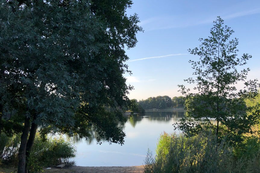 Anschließend drückt man förmlich mehr auf Ampeln als dass man in die Pedale treten kann. Lästig. Aber auch unumgänglich. Wir nähern uns schließlich dem Kern einer Großstadt. Wasser bleibt das bestimmende Motiv, auch gegen Ende des Orbit Hamburg, so wie ich ihn gefahren bin. Gerade zur rechten Zeit biegt der Track wieder ins Hamburger Umland ab. In Billstedt umrundetet man nochmal den Öjendorfer See (wer heiß gelaufen ist, kann sich im Badesee abkühlen), bevor man die Bille überquert und am Wasserpark Dove Elbe in Richtung Tatenberger Schleuse einbiegt, wo der Orbit Hamburg am Tag zuvor seinen Anfang nahm. Es ist kurz vor zehn Uhr morgens und die ersten Rennradfahrer sind schon wieder aktiv und donnern mit schmalen Reifen durch die Hamburger Vierlanden. Wenn die wüssten, wie langsam und trotzdem sportlich man fahren kann!