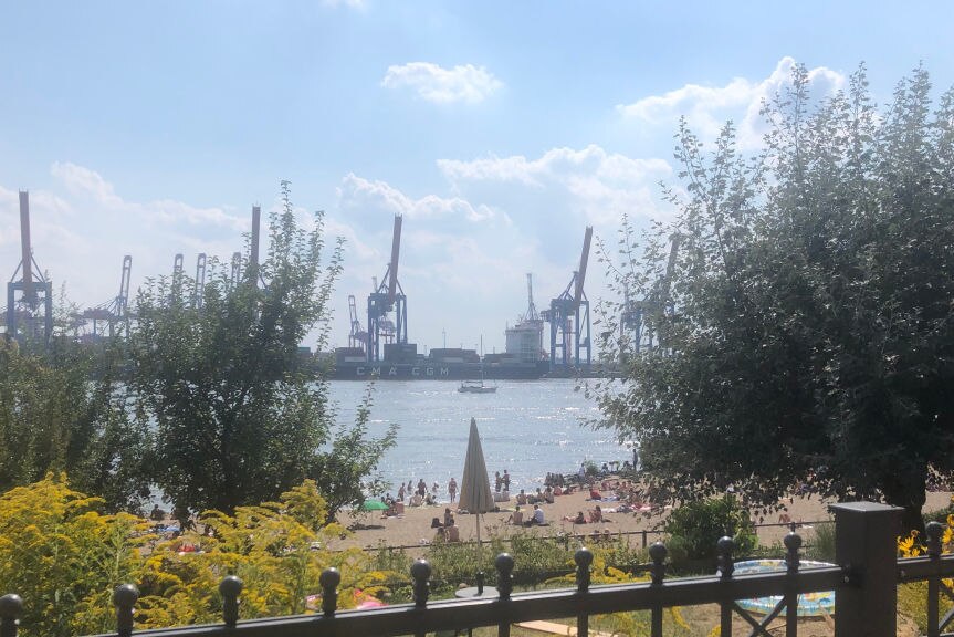 Durch den Sand am Övelgönner Elbstrand soll man sein Rad schieben oder steuern. Geschenkt.