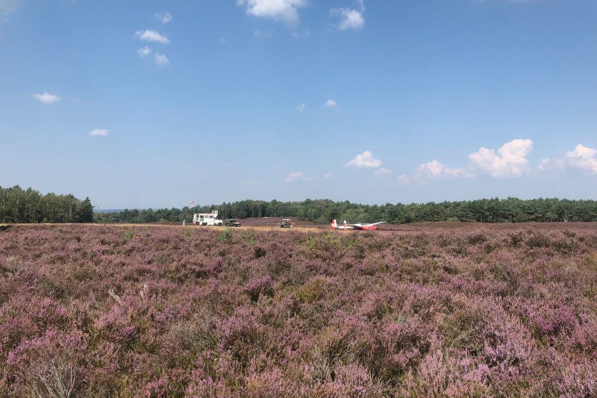 Irgendwann biegt man dann in die duftende Fischbeker Heide ein. Wurzeln werden dort von Sand abgelöst, der in ähnlicher Weise das Tempo drosselt. Die Hitzewelle der zurückliegenden Wochen fordert jetzt ihren Tribut. Ein Ortsansässiger erklärt mir, dass die Heide so trocken (und damit sandig) wie selten ist. Sand macht Spaß, kostet aber auch Kraft. So arbeitet man sich durch das Naturschutzgebiet – in kleinen Gängen und mit wuchtiger Kurbelei – bis hin zum Segelflugplatz, der die Frage aufwirft: Ist Fliegen wirklich schöner?