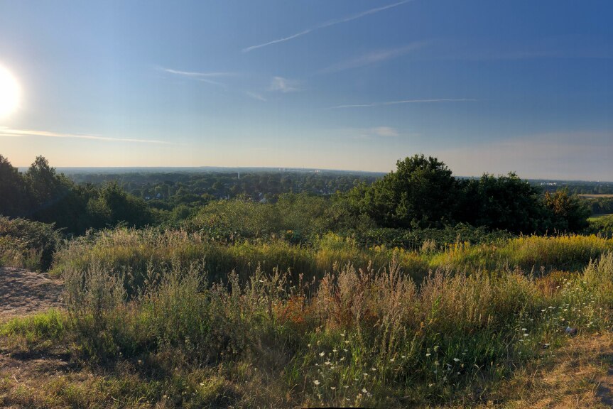 Famose Aussicht auf die Hamburger Skyline vom Müllberg Hummelsbüttel aus.