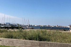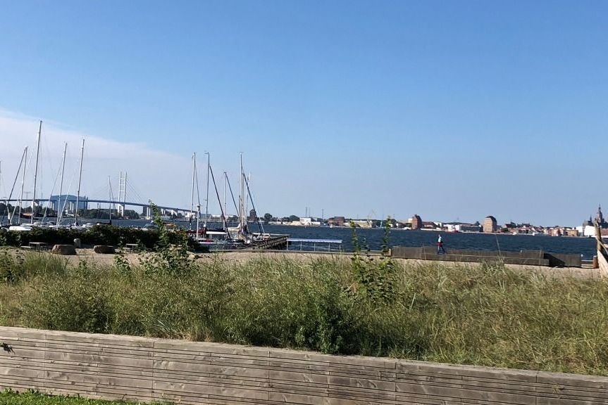 Hier beginnt und endet die Reise – in Altefähr im Süden der Insel Rügen mit Blick auf Stralsund.