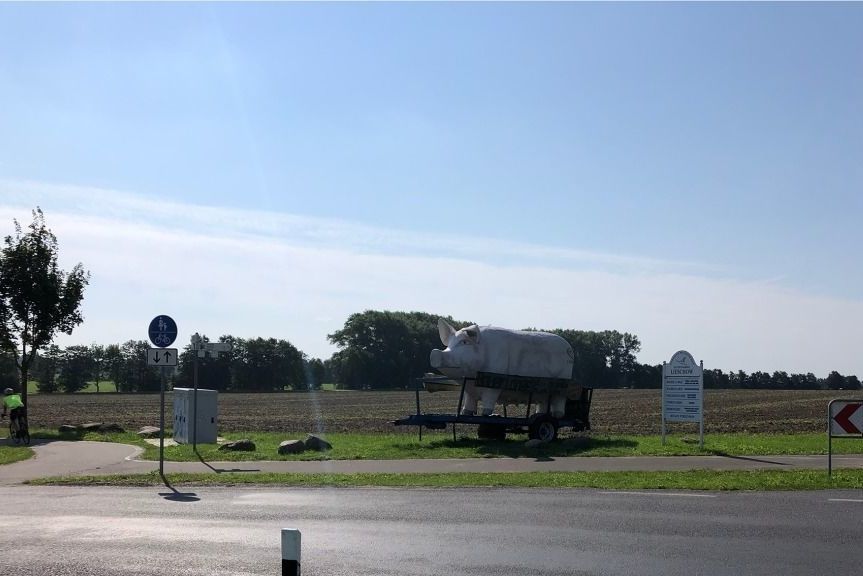 Obwohl man den Meck-Pomm-Orbit als geübter Radler locker an einem Tag schaffen kann, wollten wir hier eine Art Familienerlebnis draus machen. Keine Stoppuhr. Keine Hatz. Nur radeln und genießen. Nach einer Nacht in Stralsund fahren wir am Samstagma orgen mit dem Auto über die Rügenbrücke nach Altefähr, wo wir den Wagen abstellen, die Räder fertig bepacken und los geht die wilde Fahrt. All unsere Angst, wir müssten zwei Tage im Regen fahren, wird von einem strahlend blauen Himmel und einer leichten Brise hinweggefegt.