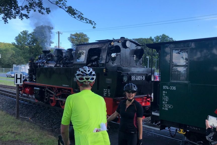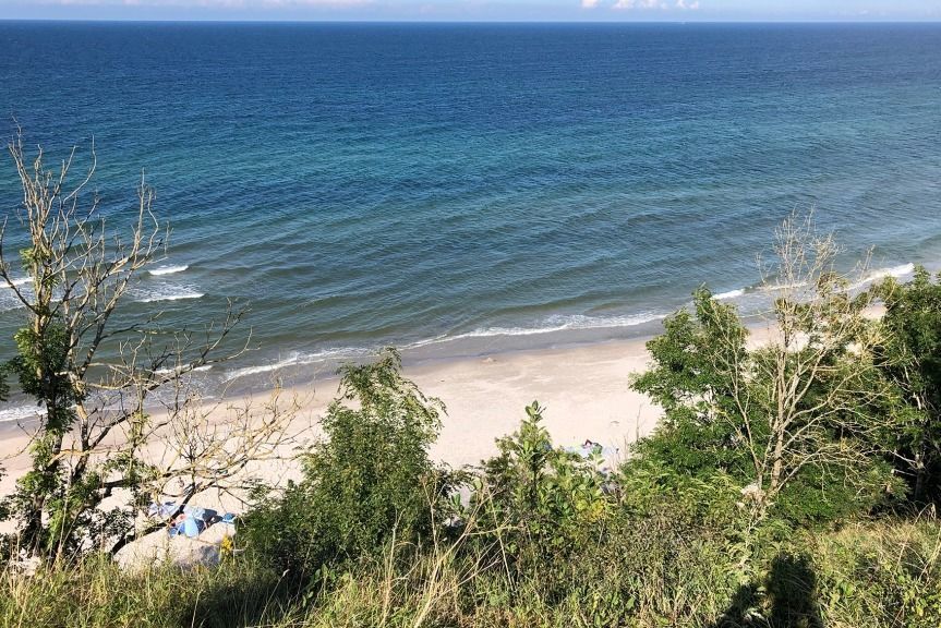 Kurze Zeit nach dem Kap Arkona begleitet man die L30 über einen längeren Zeitraum auf dem Radweg nebenan. Hier ist man nur wenige Meter vom Meer entfernt – sehen und hören kann man es indes nicht. Nicht zuletzt aufgrund des dröhnenden Autoverkehrs. Nun ja, kann man nichts machen. Anschließend geht es rund 15 Kilometer lang durch den über 3000 Hektar großen (dennoch Deutschlands kleinsten) Nationalpark Jasmund. Den mit 161 Meter höchsten Punkt der Insel, den Piekberg, haben die Orbit-Scouts ausgelassen, dennoch ist es ein wenig Kraxelei in dem ansonsten wunderbaren Buchenwald. Die darauf folgende rund sechs Kilometer lange Abfahrt ist ein Genuss. Klar, wäre noch schöner, wenn man nicht auf dem schmalen Asphaltband, sondern auf Waldboden abfahren würde, die befestigte Strecke ist aber wohl für den Transport der Touristen hinauf zum Nationalparkzentrum am Königsstuhl wichtig. Sei's drum. Wir beschließen den Tag in Sassnitz, wo wir eine Unterkunft gefunden haben.