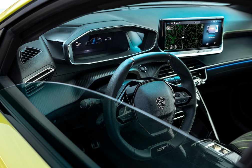 Typisches Peugeot-Layout mit kleinem Lenkrad und Instrumenten darüber. Die Ergonomie ist in den neueren Modellen aber besser, in vielen Positionen verdeckt der obere Teil des Lenkrads den kleineren Teil der Anzeigen.