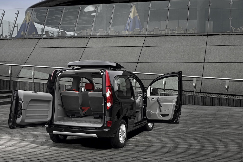 Das Dach ist im wahrsten Sinn der Clou des jüngsten Kangoo: Ein zweigeteiltes Panoramaglas-Top lässt auch für die Fondpassagiere die Sonne rein, auf Knopfdruck schiebt es sich über den vorderen Teil und lässt die Fahrt zur "windigen" Angelegenheit werden. Doch Renault setzt noch einen drauf: Die seitlich angeschlagene Heckscheibe lässt sich in der Kofferraumtür versenken, sodass auf den beiden hinteren Einzelsitzen echte Cabriogefühle aufkommen. Dorthin gelangen die Passagiere nicht nur auf konventionellem Weg über die Seitentüren, sondern auch durch die Heckklappe. Weil zwischen den ausbaubaren hinteren Sitzen eine 25 Zentimeter breite Lücke klafft, können schlanke Personen einfach durchschlüpfen. Bei geöffneten Dach können außerdem lange Gegenstände hochkant verstaut werden, so wird der Kangoo Be Bop zum Surf-Mobil oder zur Baumarktdroschke. Dazu trägt auch die niedrige Ladekante bei, wobei sogar die Stoßstange mit 100 Kilo Gewicht belastet werden darf. Hilfreiche Verzurrösen sind zusätzlich an Bord.