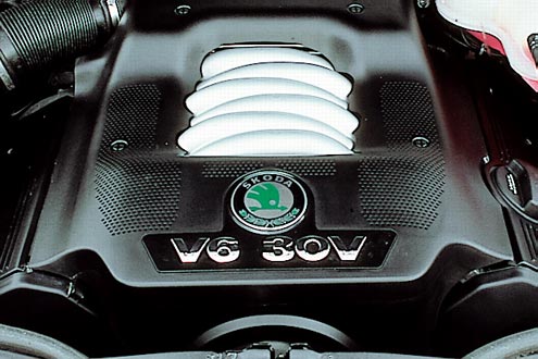 Das Herz des Superb: der 2,8-Liter-V6 (193 PS) schafft ein maximales Drehmoment von 280 Newtonmeter.Die Fakten sprechen für sich: In 8,0 Sekunden sprintet der relativ schwere Skoda von 0 auf 100 km/h, seine Höchstgeschwindigkeit von 237 km/h erreicht er ohne Hecheln. Wer einen kernigen Sound mag, wird vom starken Böhmen gut bedient. Der Vortrieb profitiert vom früh bereitstehenden maximalen Drehmoment: 280 Newtonmeter bei 3200 U/min. Hat man erst die städtischen Ampelstrecken hinter sich gebracht, sind nur der vierte und fünfte Gang gefragt. Ob am Berg, beim Überholspurt oder zügigen Cruisen – dieser Motor kennt keine Problemzonen. Fast keine. Denn fällt die Drehzahl im vierten Gang unter 2000 U/min, muss erst wieder Luft geholt werden. Jetzt greift die Fünf-Gang-Schaltung. Das kurz und knackig funktionierende Arbeitsgerät lädt direkt zum Schalten ein. Natürlich könnte die Elastizität eines 2,8-Liter-Aggregats besser ausfallen, aber ein Rennwagen war nicht das Ziel der Ingenieure aus Mlada Boleslav, sondern eine gut bestückte, komfortable Reiselimousine. Wertung: 87 von 100 Punkten