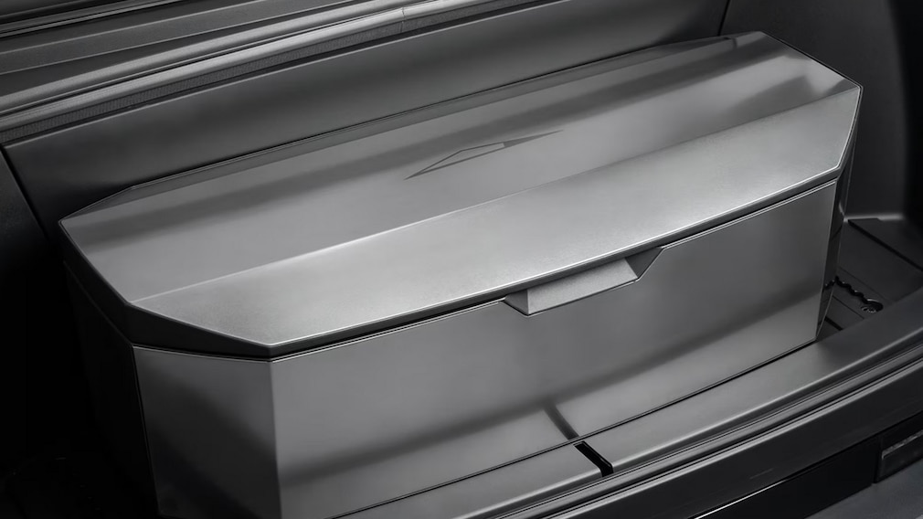 Mit dem "Fridge" präsentiert Tesla ein nicht nur cooles, sondern auch sinnvolles Gadget für den Cybertruck. Die Kühlkiste lässt sich sowohl im hinteren Ladebereich des Pick-ups als auch im sogenannten Frunk vorne einbauen und besitzt natürlich die kantige Optik des stählernen Ungetüms.