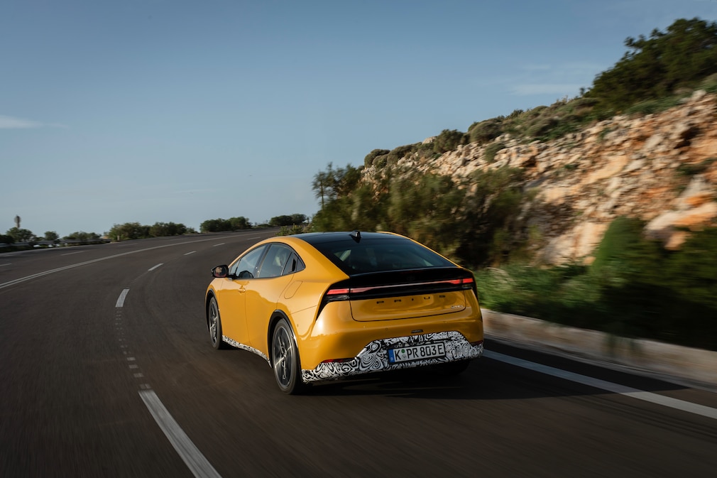 Die Rest-Tarnung am Toyota Prius ist dem Umstand geschuldet, dass es sich um eine Prototypen-Fahrt handelte.