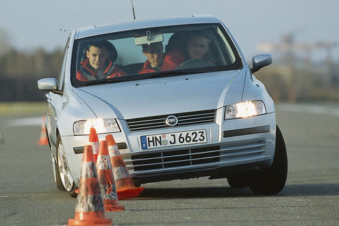 Von Anfang an die Stärke des Stilo: die Sicherheit. Sechs Airbags (Frontbags zweistufig), ESP und narrensicheres Fahrverhalten bieten zuverlässigen Schutz. Nachsitzen müsste der clevere Bambini-Bomber mit der längs verschiebbaren Rückbank aber bei der gefühllosen elektrohydraulischen Lenkung, der schlecht gestuften Schaltung und vor allem beim müden 1,6-Liter. Wie 103 PS fühlt sich der Vierventiler in niedrigen Drehzahlen jedenfalls nicht an. Bei der Elastizität fährt er dem gesamten Feld hinterher und entwickelt trotzdem den größten Durst — mamma mia.