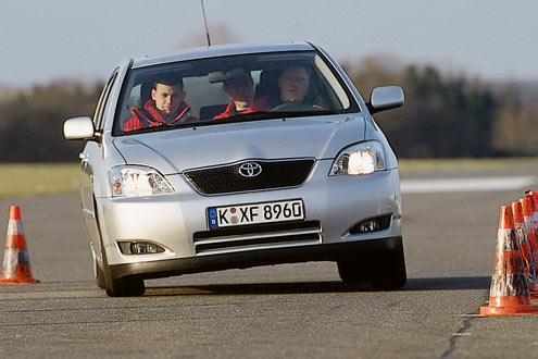 Dafür verwöhnen die ebenso bequemen wie gut konturierten Sportsitze die Corolla-Crew mit langstreckentauglichem Komfort. In Verbindung mit dem untadeligen Platzangebot empfiehlt sich der Corolla als feiner Familientransporter mit durchaus elegantem Einschlag. Immer vorausgesetzt, die Kurzen wollen nicht ihr komplettes Spielzeugsortiment mit auf Tour nehmen. Denn der Kofferraum des Corolla fasst neben der Kinderkarre allenfalls noch eine Notration Pampers — die Konkurrenz schafft mindestens eine Reisetasche mehr. Zusätzlich sollte der Nachwuchs schüttelfest sein. Der straff ausgelegte Corolla nimmt feine Stöße noch gelassen, reicht Gullydeckel aber vernehmlich nach innen weiter — hier fehlt Feinabstimmung, treibt Toyota es ein wenig zu bunt.
