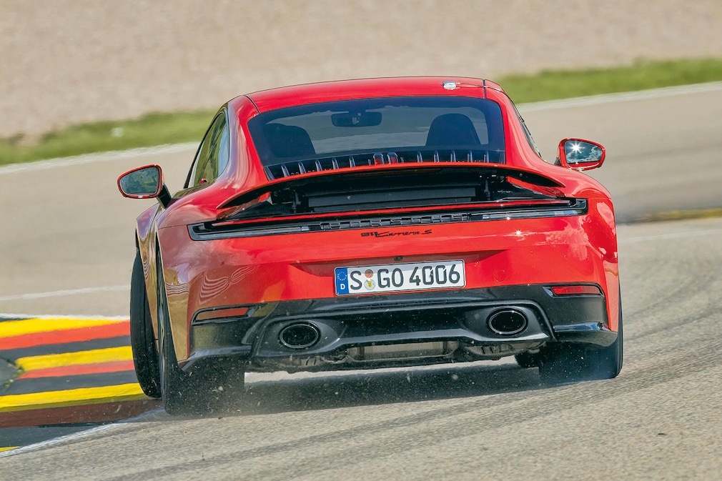 Ohne jetzt groß spoilern zu wollen, aber auch die obligatorischen 30 PS, die zum Facelift nun auftoupiert wurden, ändern an der von Grund auf gesunden Traktion des Carrera S nicht das Geringste. Ketzerisch könnte man eher fragen, ob sie überhaupt etwas ändern. Schließlich stand das zurückliegende Facelift der Elfer-Baureihe nicht gerade im Ruf, fahrdynamisch Weltbewegendes bewirkt zu haben – von der grundsätzlichen Neuausrichtung des 911 GTS als Performance-Hybrid einmal abgesehen. Billig davonstehlen tun sich die Stuttgarter deswegen aber noch lange nicht.