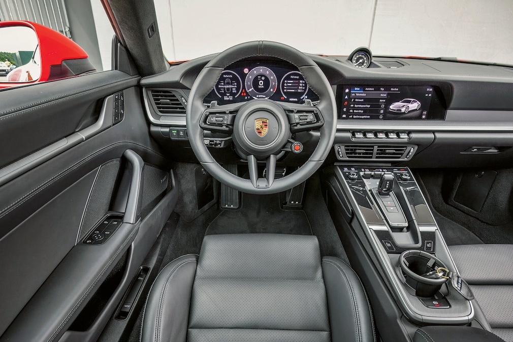 Das 911-Facelift kommt mit schlank geschnittenem, sachlichem Cockpit inklusive digital animierter, aber noch immer mittiger Drehzahlnadel.