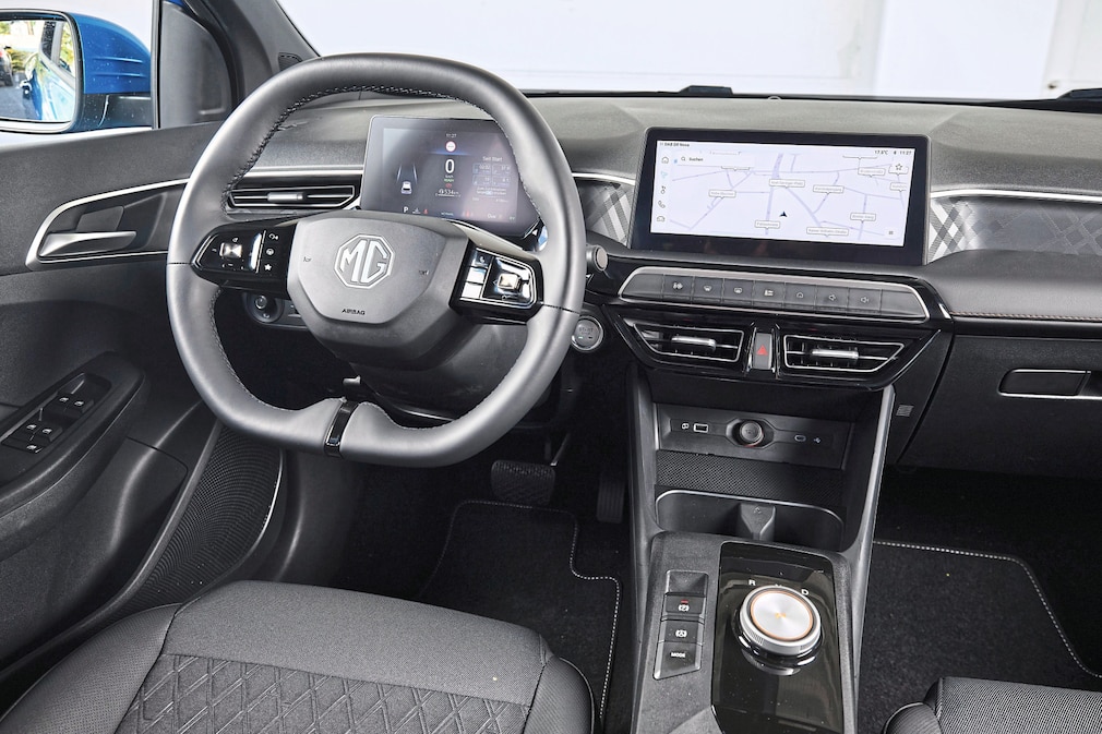 Der günstige Preis ist dem Chinesen mit dem britischen Namen nicht unbedingt anzusehen. Zugegeben, unser Test-MG3 ist die edlere Ausführung namens Luxury – erst dann steht er mit 16-Zoll-Alus, LED-Scheinwerfern, Sitzheizung, Rundum-Kamera und Keyless Go da wie gezeigt.