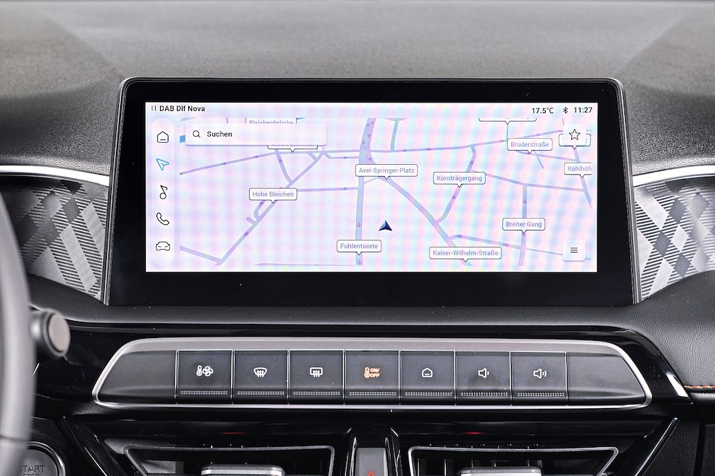 Ansonsten finden sich im Innenraum neben viel Hartplastik zwei Bildschirme, beide immer Serie. Der mittlere kann Routen anzeigen, ist berührungsempfindlich und tut das, was er soll. Mit ein paar kleinen Ausnahmen – zu denen die orthografisch verunglückte Meldung "versuchen Sie es erenut" zählt. CarPlay und Android Auto lassen sich per USB-A-Kabel verbinden.