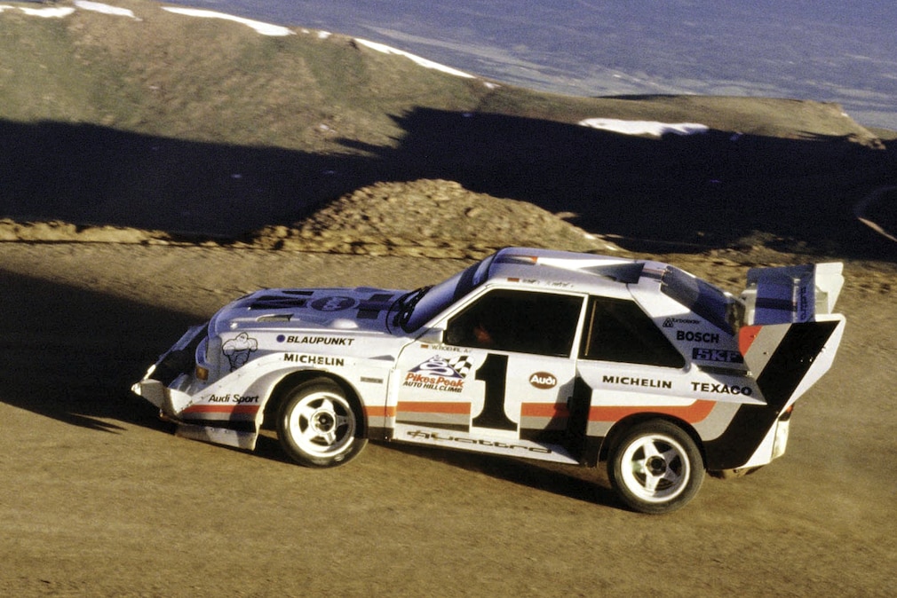 1987 kam der Über-Audi auf dem Zenit seiner Karriere an. Da fuhr Walter Röhrl mit einer 598 PS starken Sonderversion beim Pikes-Peak-Rennen in den USA mit und besiegte nicht nur seinen Konkurrenten Ari Vatanen auf Peugeot 205 T16 E2. Er stellte zudem einen Streckenrekord für die Ewigkeit auf.
