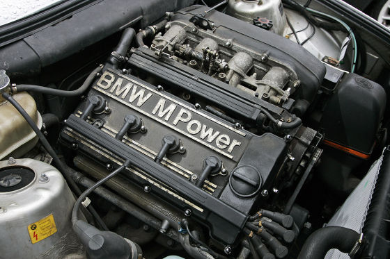 Der Motor des M3 sieht gierig aus und ist auch technisch eine Dlikatesse.Die Optik mit den betonten Radausschnitten war damals ein echter Knaller – heute wirkt der sportlichste 3er eher zahm. Wobei hinter der aufgeblasenen Karosserie mehr steckt als reines Geltungsbedürfnis. Kotflügel, Heckdeckel, Spoiler und Stoßfänger sind zwecks Gewichtsersparnis aus Kunststoff, Front- und Heckscheibe für mehr Steifigkeit mit der Karosserie verklebt. Ergebnis: Der M3 wiegt rund 1300 Kilogramm. Das spürst du beim Fahren, er beschleunigt flink aus den Ecken heraus und bremst hervorragend. 38,1 Meter aus 100 km/h sind ein guter Wert. Auch heutzutage.
