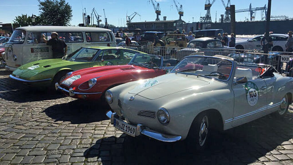 Pünktlich um zwölf Uhr bollert der Bentley 8 Litre Le Mans Open Tourer über die Startlinie. Hamburgs Wirtschaftssenator Frank Horch schwenkt die Starterflagge, naürlich in Rot mit Hamburger Wappen. Es geht los! An der Elbe führt die Strecke eine Zeitlang durch die Vier- und Marschlande, durch den Sachsenwald auf Mölln zu. Dort begrüßen Till Eulenspiegel und Herzog Albrecht der Gute das Feld, darunter auch den Hamburger Bauunternehmer Stefan Wulff und seinen Co-Piloten Dr. Jörg Verstl vom Team Otto Wulff. Beide genießen die Rallye im hellblau-weißen Austin Healey 3000, natürlich offen. Erfreut zeigt sich auch Jan Bayer, Vorstand der BILD und WELT-Gruppe in der Axel Springer SE, in der auch AUTO BILD KLASSIK erscheint: "Wir haben großes Glück gehabt mit dem Auto", sagt der Top-Manager, als er in Neustadt-Glewe, der Nachmittagsrast, aus dem weißen Käfer Cabrio steigt.