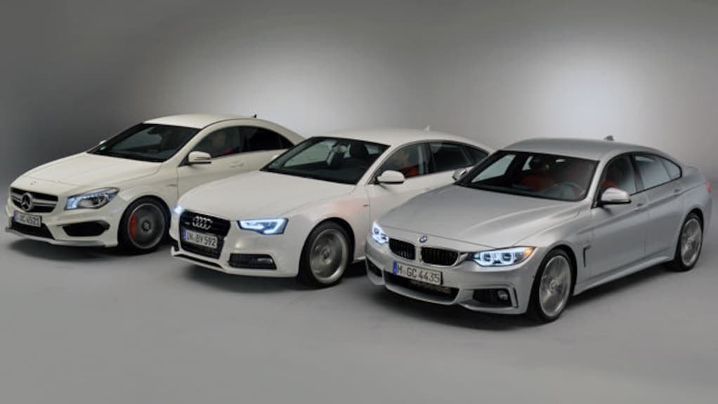 Der BMW 4er Gran Coupé feiert auf dem Genfer Autosalon 2014 Premiere. Von Ende Juni an soll er gegen Mercedes CLA Coupé und Audi A5 Sportback antreten. Erster Studio-Vergleich.